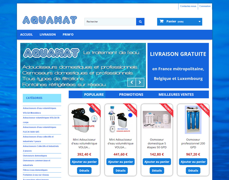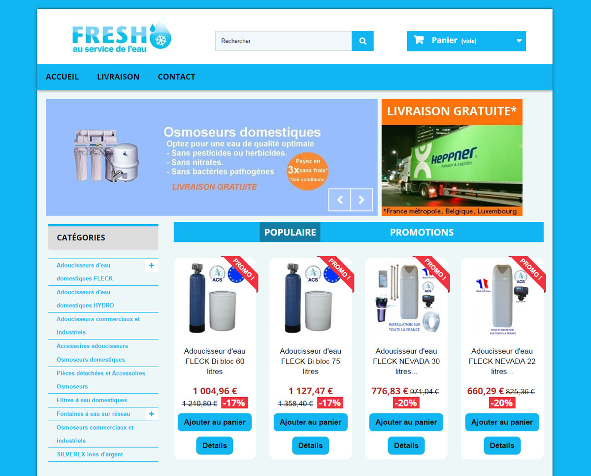 Site e-commerce prestashop d'adoucisseurs et osmoseurs