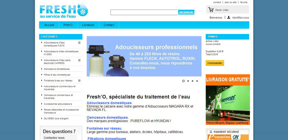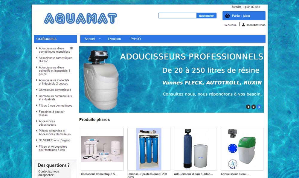 Site e-commerce prestashop d'adoucisseurs et osmoseurs